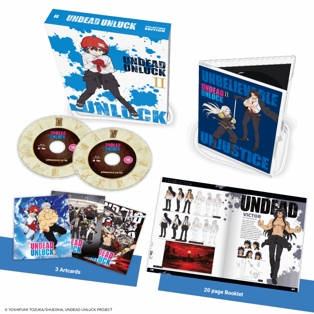 Anyway, we announced this a little while back, but we’re very excited to finally unveil our release of Undead Unluck, David Productions’ eye-popping and kinetic adaptation of the madcap supernatural action adventure manga from the Shonen Jump stable. If you didn’t spot it while it was streaming, then this is a great chance to catch up on what you missed and nab this hidden gem.