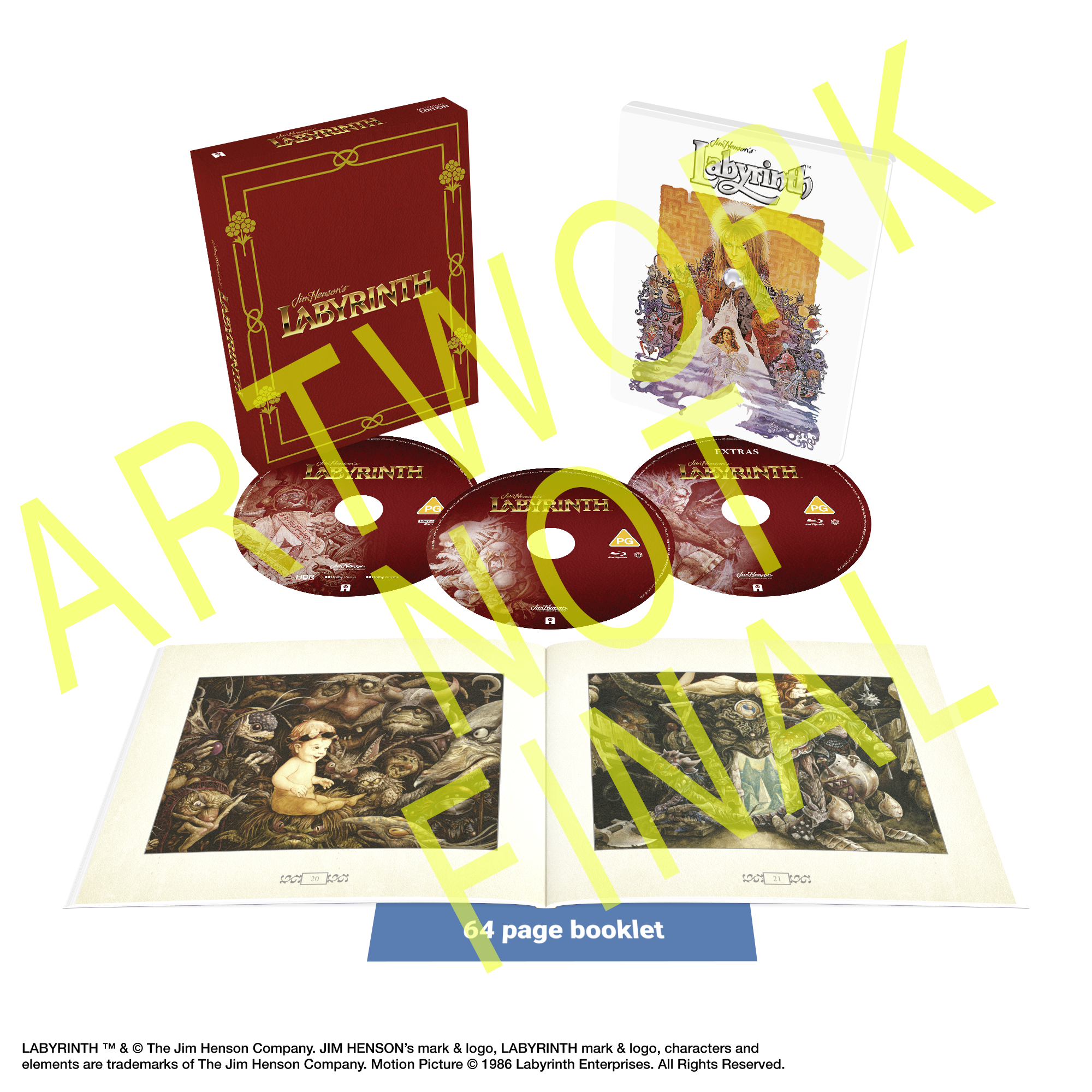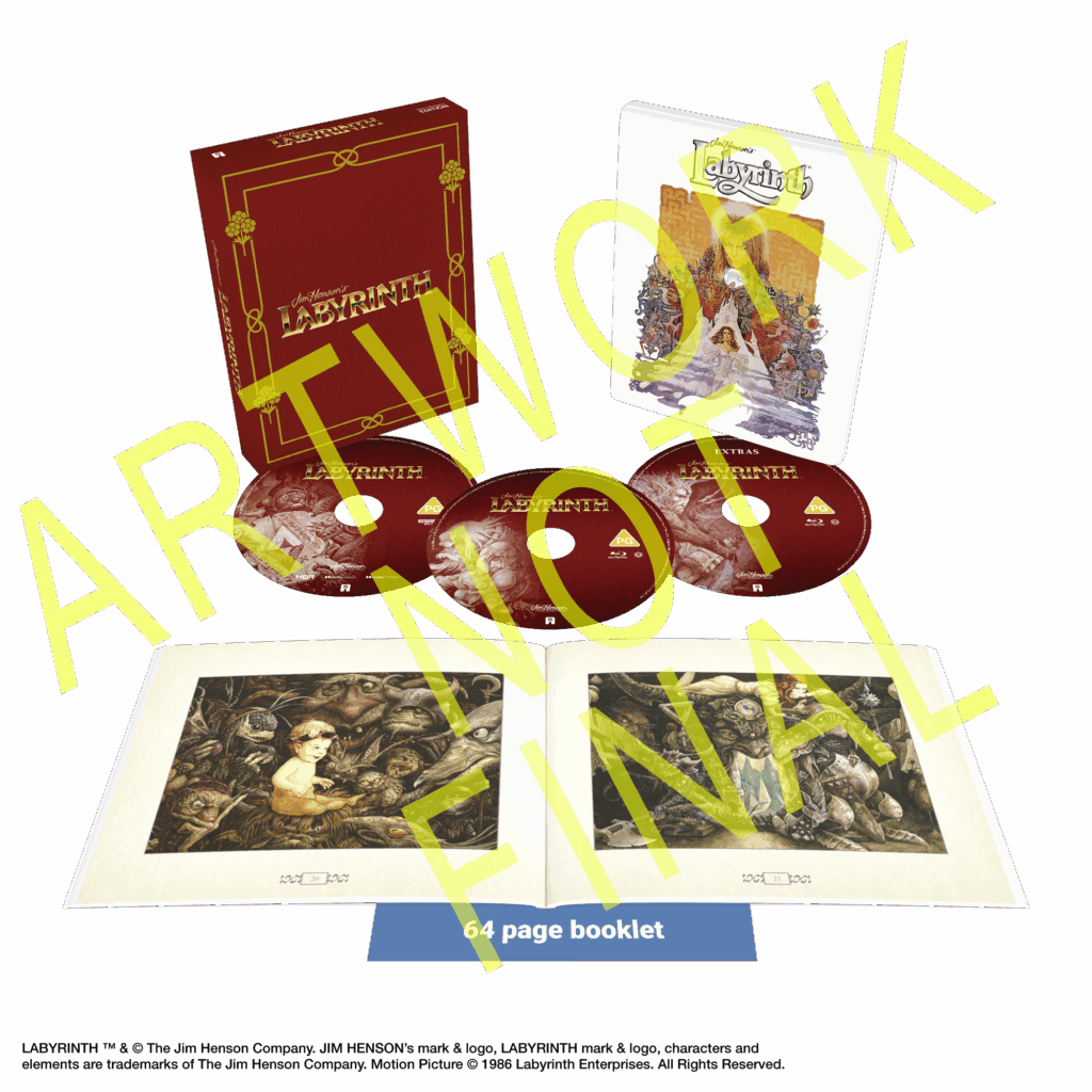 For the true Labyrinth lovers, we’ll also be releasing a 4K Collector’s Edition which contains the same Steelbook edition and disc contents, but also features a rigid slipcase and a 64-page production art and photo booklet. You can check out an early peek of how we’re expecting that to look below!